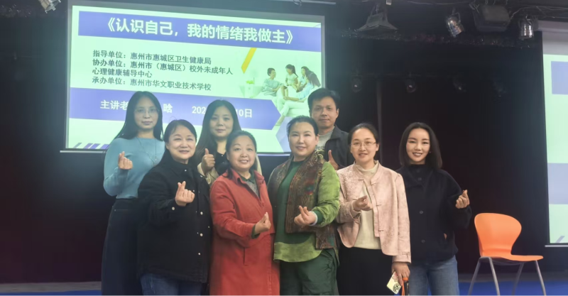 为深入贯彻落实关于加强未成年人思想道德建设的工作部署,切实关注青少年心理健康发展,3月10日晚,惠州市(惠城区)校外未成年心理健康辅导中心第二次走进惠州市华文职业技术学校,在多功能会议室成功举办《认识自己,我的情绪我做主》专题讲座。全校550余名学生齐聚现场,沉浸式参与本次心理赋能课程,共同开启一场探索内心、掌控情绪的成长之旅。